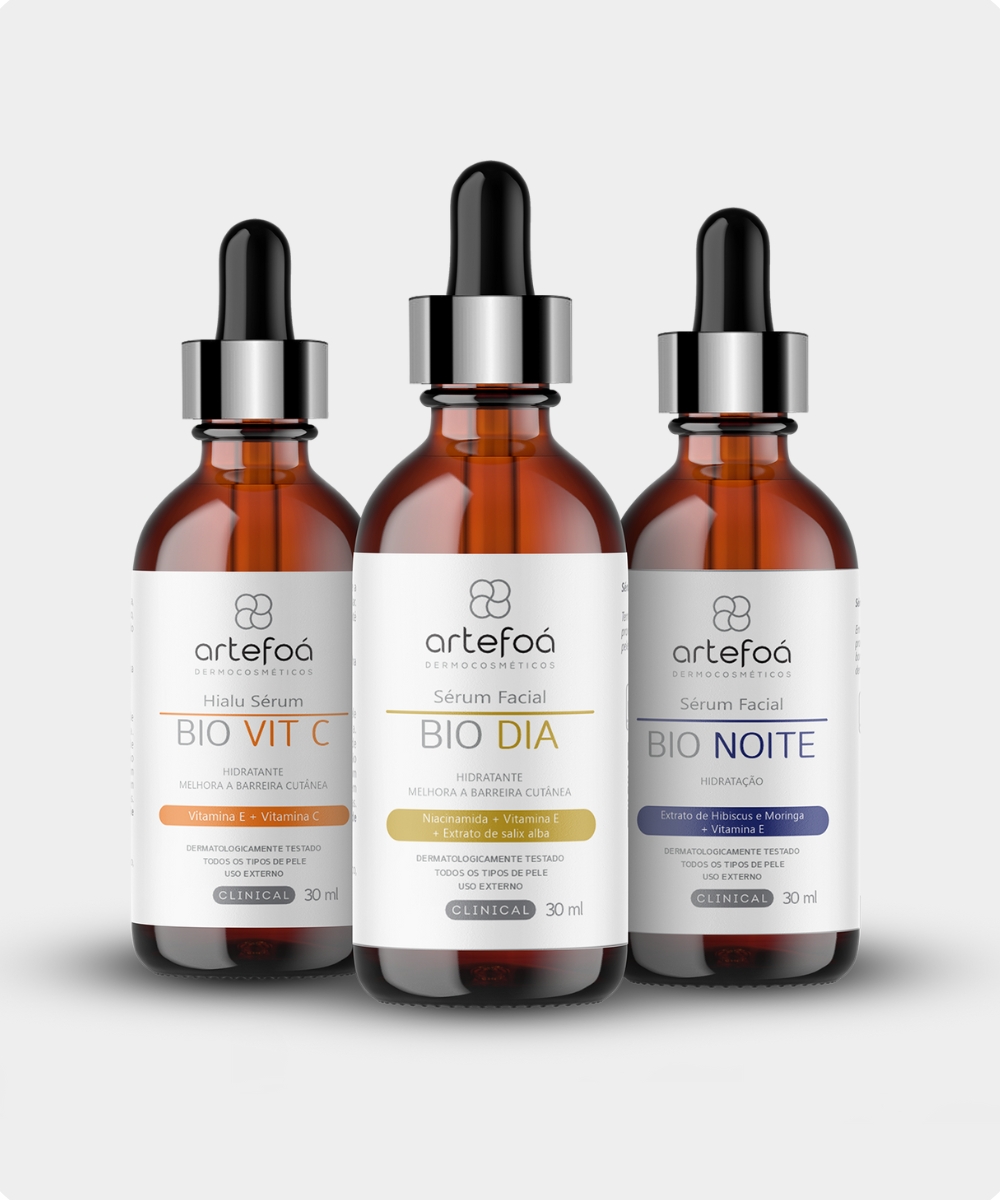 A Artefoá oferece no centro da linha dermocosmética uma estrutura biomimética única e exclusiva, uma base composta de óleos e de ceras que interagem com o DNA da pele, assemelhando-se aos seus fatores naturais de hidratação. Produtos que agem na camada mais profunda da pele que resultam em uma melhoria duradoura e visível.