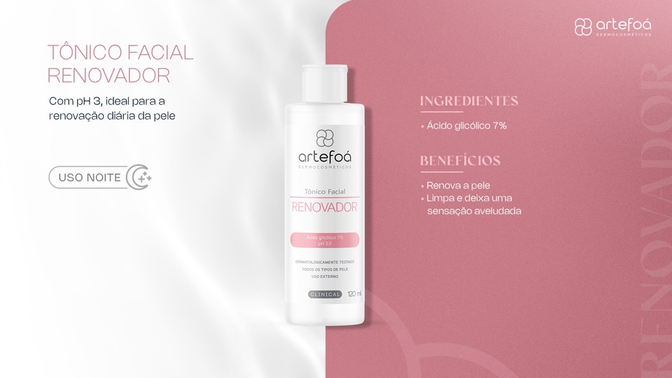 | Característica | Tônicos renovadores comuns | Tônico Renovador Artefoá |